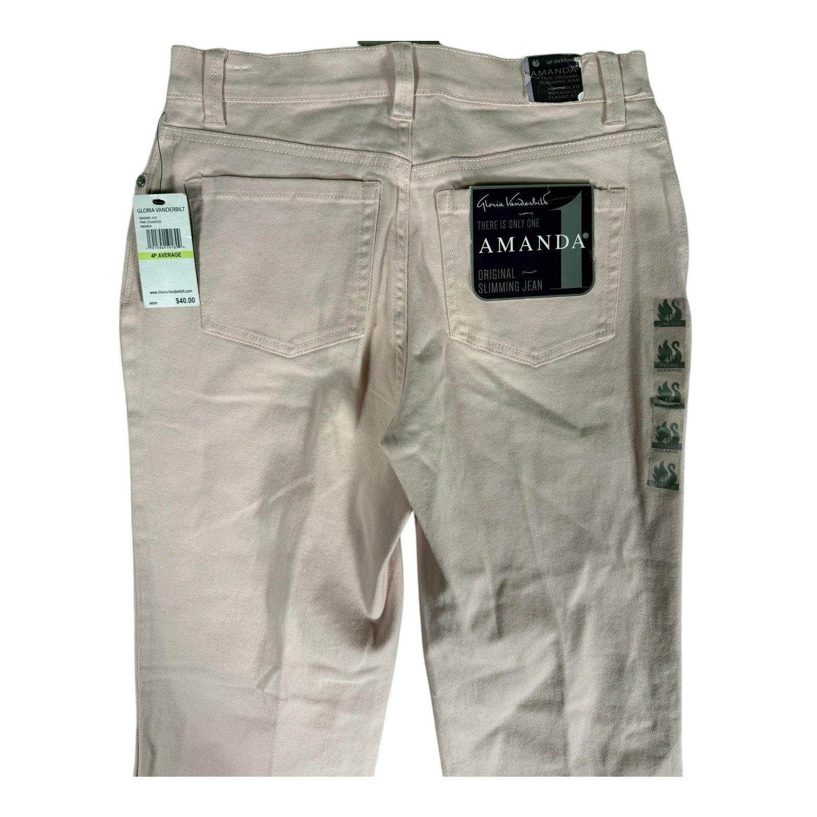 NWT Women's Gloria Vanderbilt Pink Amanda Slimming Jeans Size 4P