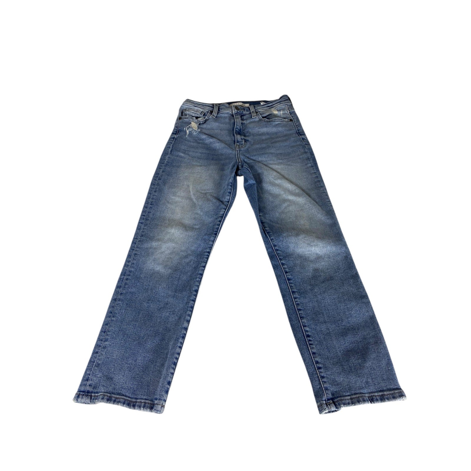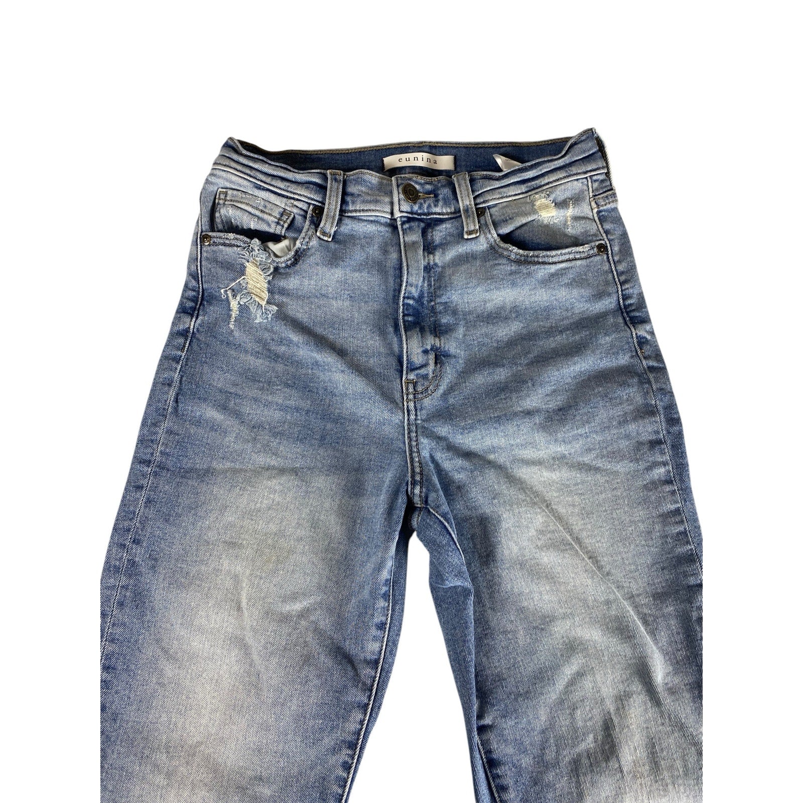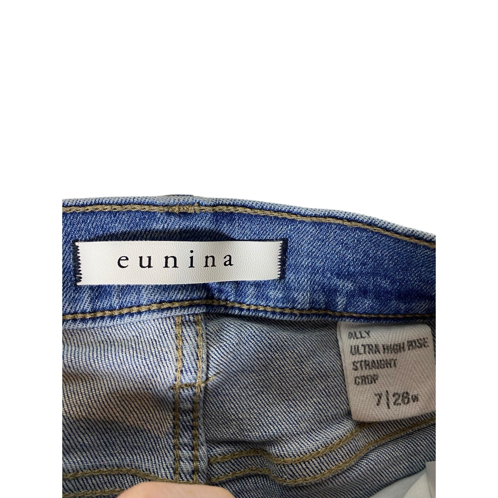 Women Distressed Eunina Ultra High Rise Straight Crop Jeans Size 7 Cotton Jeans